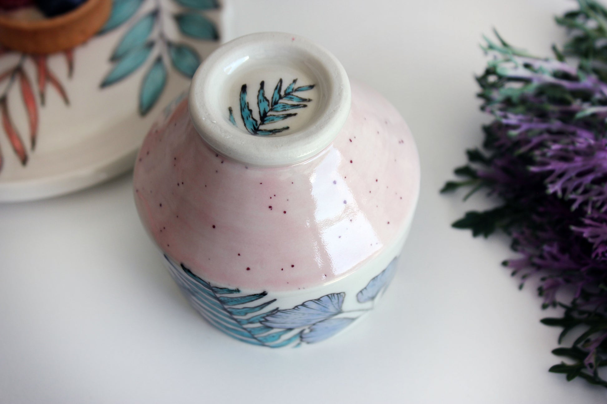 This Ceramic Tumbler is perfect for those who love botanical patterns. Most of my works are inspired by nature and my surroundings. This handmade tumbler has exclusive shapes from porcelain and unique hand-drawn patterns to create originality. This glass can be used for coffee, tea, water, juice, wine, cold drinks, and cocktails, You can use it for every drink You like or for a beautiful display in your office.