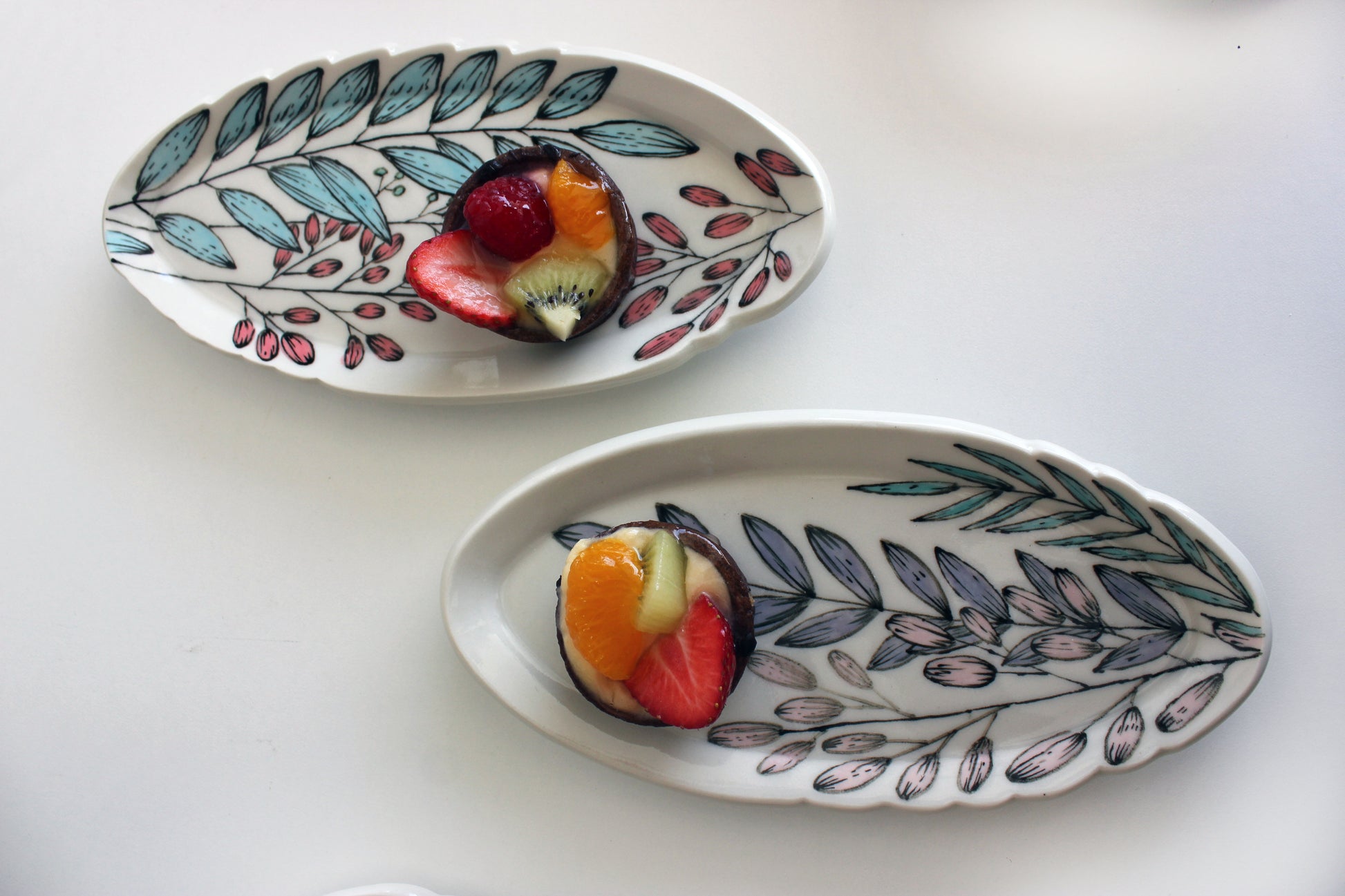 Plater are perfect for those who love unique floral patterns. Most of my works are inspired by nature. This handmade dish has exclusive shapes from porcelain clay with colorful and unique hand drew patterns to create originality. This dish can be used for serving and for a beautiful display on the wall